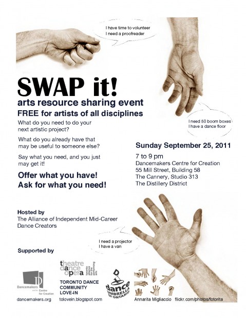 Any artist who as ever found themselves needing something specific for a process, workshop or show may have a new way to get their hands on those things without paying, but in the spirit of community, through offering something they might already have (and not use, or not use regularly) in exchange.